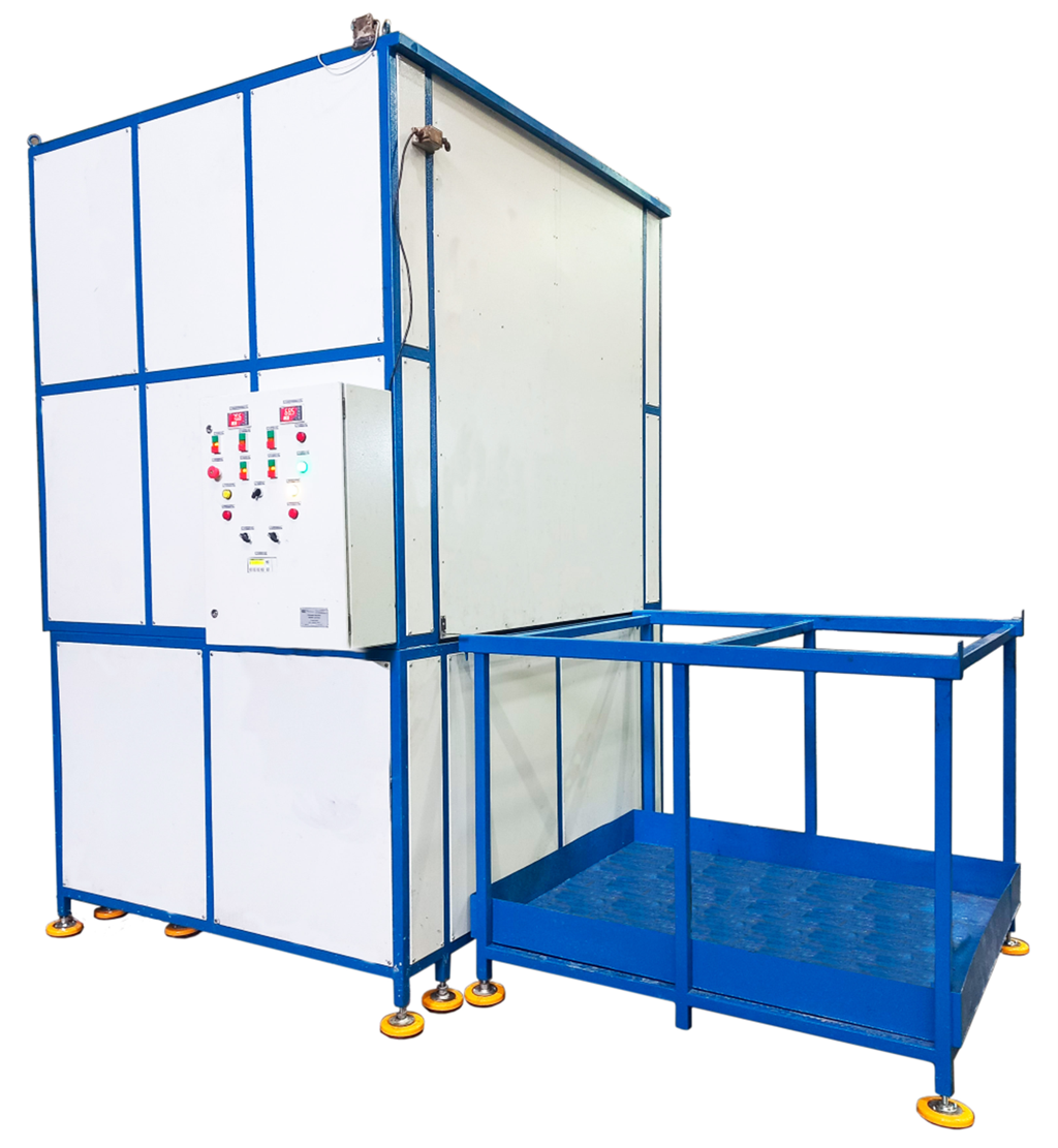 Моечная машина рам тележек локомотивов предназначена для очистки рам тележек и других крупногабаритных деталей от грязи, смазки и лакокрасочного покрытия с использованием моющей жидкости под высоким давлением. Она оснащена механизмом загрузки и выгрузки транспортировочной тележки, системой подготовки моющего раствора, системой подачи моющего раствора.