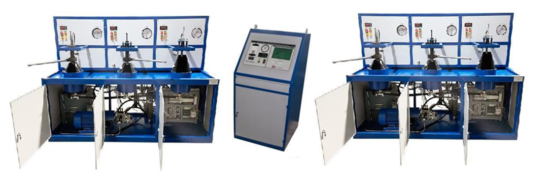 Для обеспечения удобства и оперативности предусмотрена возможность работы на одном из мест, с автоматизированной переналадкой. Автоматизация процесса испытаний, осуществляется за счёт применения гидравлический кранов с пневмоприводом.