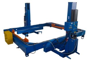 Кантователь рам тележек предназначен для поворота (кантовки) рам тележек электропоездов на 180° при проведении ремонтных работ. Конструкция состоит из двух силовых стоек с механизмом подъёма и синхронного опускания и поворотного устройства. Для безопасной фиксации различных типов рам используется комплект сменных захватов.